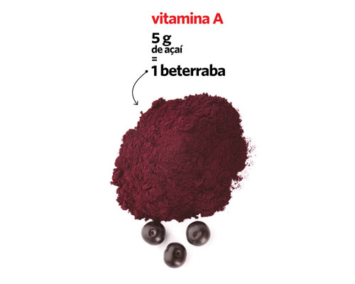 Gorduras, proteínas, vitamina A e minerais: as bagas de açaí são riquíssimas. A gordura é comparável à do azeite e do abacate. Essencial na dieta dos indígenas da Amazónia, está associado ao emagrecimento e à melhoria do tónus muscular e favorece a digestão. Contém compostos fitoquímicos, como as antocianinas, às quais se atribuem propriedades antioxidantes. Faltam, porém, investigações que provem os efeitos referidos. Além disso, a dose de 5 gramas, referida nalguns rótulos, fornece teores muito baixos de nutrientes, tornando-se, assim, pouco interessante do ponto de vista nutricional.