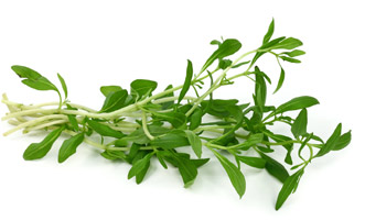 Caules e folhas frescas; folhas secas, moídas e congeladas.