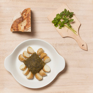 Pescada com crosta de grelos, poejo e coentros (4 pessoas)