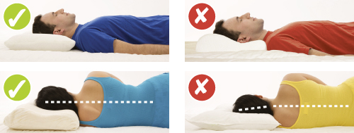 Os problemas nas costas são mais difíceis de contornar. Apesar de muitas almofadas e colchões se autoproclamarem como os melhores para pescoços e costas sensíveis, há pouca evidência sobre os potenciais benefícios. Como as formas corporais e as preferências dos utilizadores variam muito, o melhor será aconselhar-se com um fisioterapeuta. De qualquer modo, a regra é optar por uma almofada não muito alta nem muito dura. Idealmente, a coluna deve ficar quase direita, quando está deitado com a cabeça na almofada.