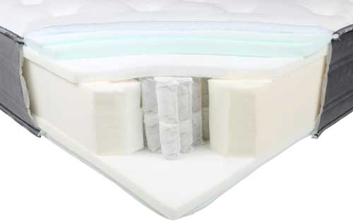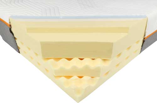 Nas imagens abaixo é possível ver a diferença entre um colchão com uma só camada de espuma viscoelástica e um colchão com maior espessura deste material.