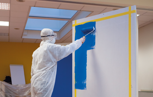 Ainda antes de pintar, isole muito bem todo o espaço, tanto o chão como portas, janelas e locais que não queira pintar. Depois, é só escolher a tinta e o material mais adequado para pintar, e deitar mãos à obra.