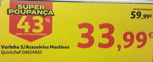 Além disso, a utilização de expressões como "Super Poupança", "Melhor preço" ou "Promoção oportunidade", lado a lado com percentagens de desconto que têm como referência um suposto PVPR, também é comum e pode levar o consumidor a acreditar que está a ser dado um desconto sobre um preço que pode nunca ter sido praticado.