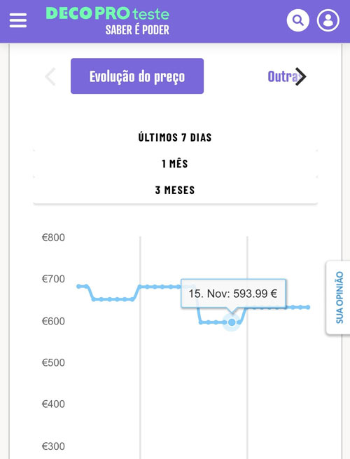 Apesar de a loja não anunciar uma redução de preço, apenas alguns dias antes, entre 11 e 16 de novembro, o mesmo televisor tinha estado à venda naquela loja online por 593,99 euros, ou seja, menos 36 euros, como mostra a ferramenta Comparar Preços, da DECO PROteste.