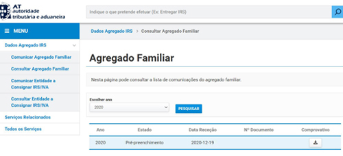 No menu lateral esquerdo do Portal das Finanças, vá a "Serviços" e, na área "Dados pessoais relevantes", selecione a opção "Consultar agregado familiar".