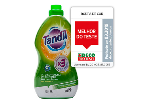 - Eficácia na remoção de nódoas enzimáticas (20%), <br>oxidáveis (20%) e de gordura e de pigmentos (20%), Brancura (10%) e encardimento (5%), Preservação da cor (10%) e Impacto ambiental dos ingredientes (10%) e da Embalagem (5%) Categoria da licença: detergente universal para a roupa