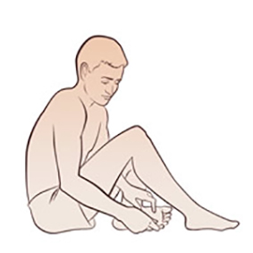 5. Sente-se e examine as pernas, os pés – plantas, entre os dedos e as unhas – e os órgãos genitais.