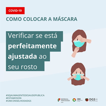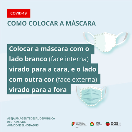 Para que a sua função seja cumprida, é fundamental que manuseie e utilize a máscara corretamente. Esta deve cobrir por completo o nariz e o queixo. Antes e depois de a pôr, deve lavar as mãos com água e sabão ou desinfetá-las com um gel à base de álcool.