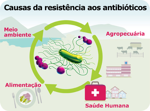 - o uso inadequado de antibióticos em seres humanos e animais;
