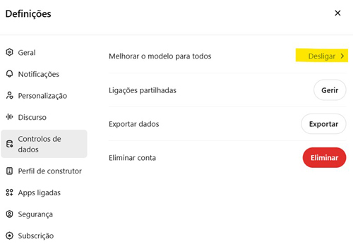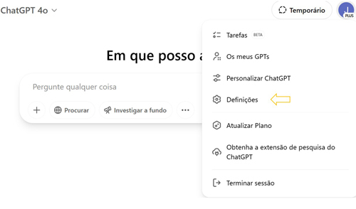 Se não quer que as suas interações sejam utilizadas para treinar o ChatGPT, é possível desativar essa funcionalidade nas definições da sua conta. Siga estes passos: