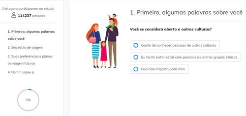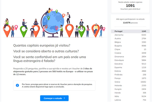 No final de um rol de perguntas e de respostas, mais um menos óbvias, sobre a propensão para conhecer culturas de outros países, e supostamente para enriquecer um estudo europeu sobre preferências turísticas, receberá o direito a levantar um voucher.